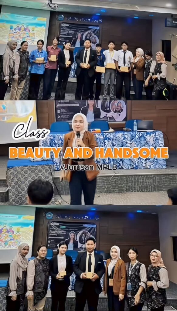 Pada tanggal 17 September 2025, Jurusan MPLB menyelenggarakan kegiatan Class Beauty and Handsome, salah satu agenda yang paling dinantikan oleh para siswa. Kegiatan ini dirancang tidak hanya untuk mengajarkan cara berpenampilan menarik, tetapi juga sebagai sarana menumbuhkan kepercayaan diri serta menanamkan sikap profesional yang sangat dibutuhkan di dunia kerja.